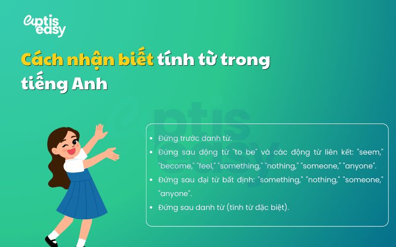 Tính từ trong tiếng Anh có thể đứng ở nhiều vị trí khác nhau tùy theo cấu trúc câu và mục đích sử dụng:
