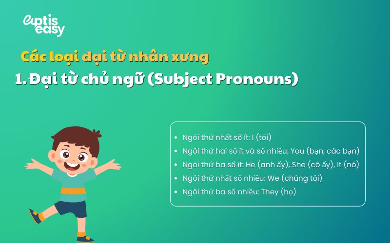 Đại từ chủ ngữ được sử dụng khi đại từ đóng vai trò là chủ ngữ của câu, tức là người hoặc vật thực hiện hành động.