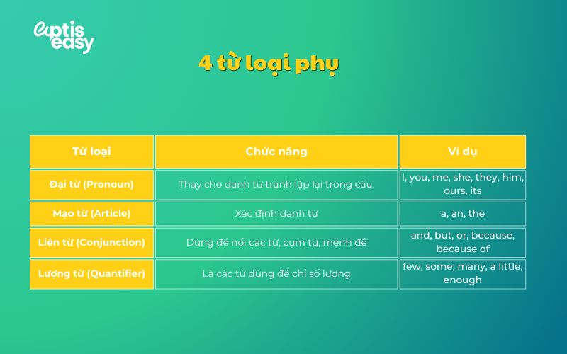 Nhóm 4 từ loại phụ trong tiếng Anh